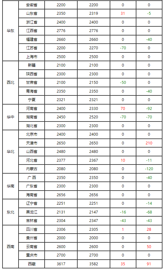 今日从产区白羽肉毛鸡价钱全体不变。山东均价7。11元/公斤,取昨日持平;辽宁均价7。36元/公斤,取昨日持平;从销区江苏均价7。90元/公斤,取昨日持平。从供需来看,短期内鸡源尚且丰裕,供应端对价钱存正在必然支持感化。但屠宰企业走货欠佳,库存持续垒高,宰杀志愿一般,价钱上涨空间。分析来看,估计短期内毛鸡价钱或仍以不变为从基调。
