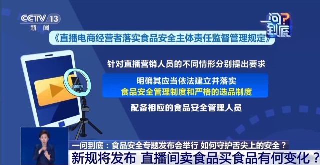 记者正在发布会上领会到,《曲播电商落实食物平安从体义务监视办理》曾经走完审核审议流程,新规是若何规范从播、平台的食物平安义务的?当前正在曲播间买食物,再碰到临期、“三无”产物,是不是更便利了呢?